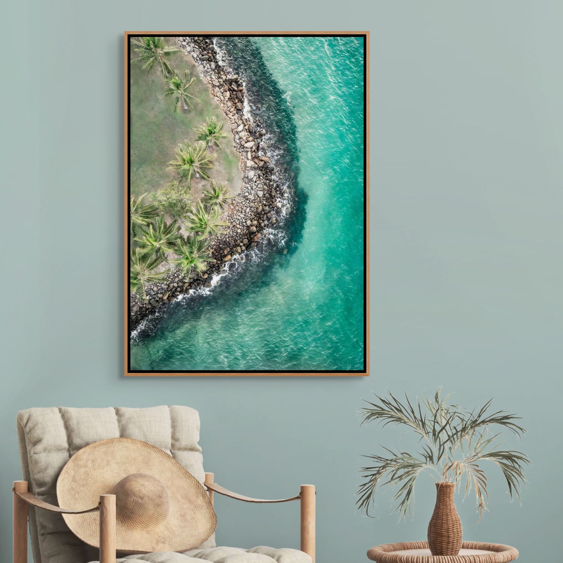The perfect harmony between land, sea, and space invites the viewer to pause — as if you're hovering in that quiet, breezy moment where hammocks sway and time stands still. Ideal for lovers of coastal serenity, slow living, and the beauty of aerial perspective.