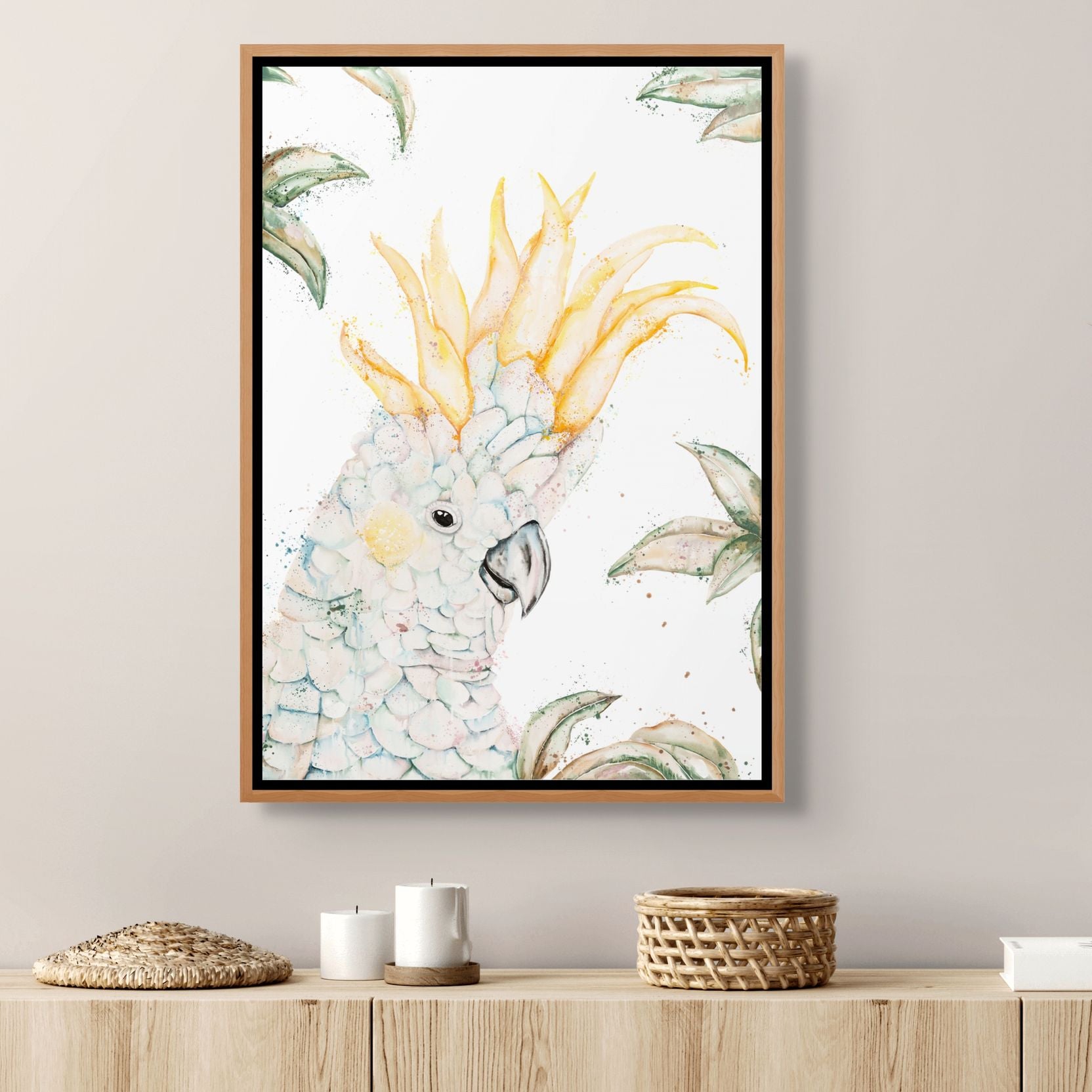 An exact replica of Lemon Sorbet – an acrylic painting by Stephanie Elizabeth bursting with vibrant yellows and soft highlights. This limited edition artwork captures the playful energy and charm of a white cockatoo, bringing light-hearted spirit and colour into your space.