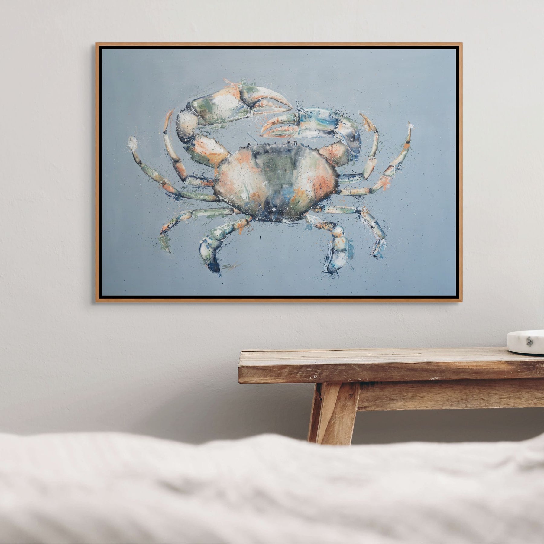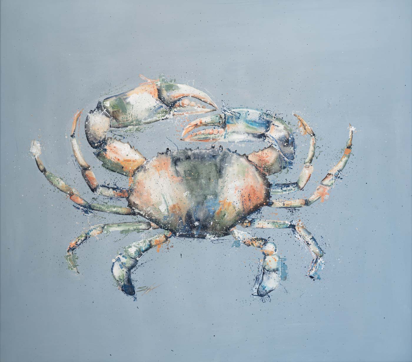 An exact replica of Muddy Days – a detailed acrylic painting by Stephanie Elizabeth of a mud crab set against a richly textured blue background. Earthy, bold, and full of character, this piece captures the quiet resilience of this coastal creature, perfectly balanced between strength and stillness.